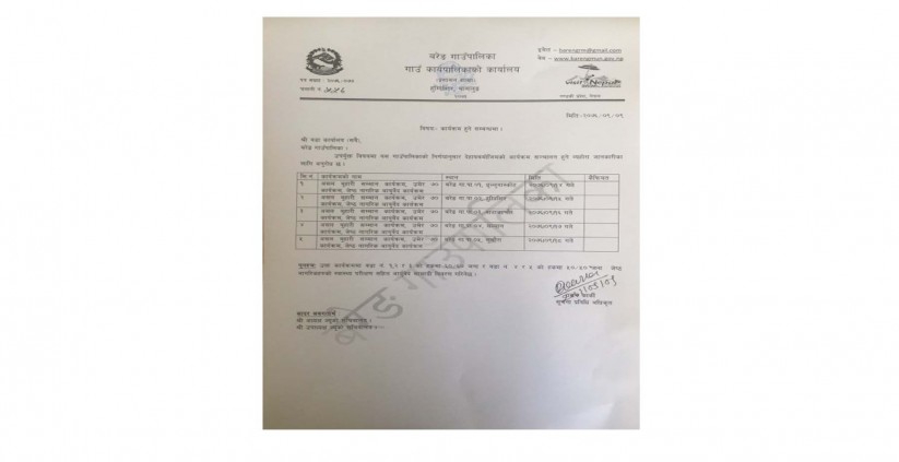 केशबराज क्षेत्री, बरेङ । २०७६ पौष १३ । बरेङ गाउँकार्यपालिकाको कार्यालय हुग्दिशिर बागलुङले गाउँपालिका भित्रका असल बुहारी सम्मान कार्यक्रम गर्ने भएको छ ।