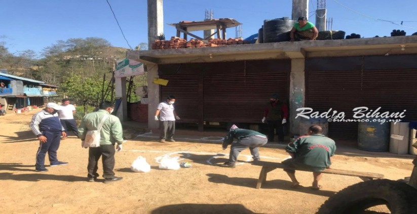 बरेङका स्वास्थ्य संस्था तथा खाद्यान्न पसलहरुमा दुरी कायम ।