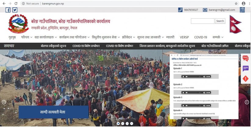 बरेङ गापाको वेवसाईट barengmun.gov.np लग इन गरि covid-19 मेन्यु चुज गरि कार्यक्रम सुन्न सकिने बरेङ गाँउपालिकाका सूचना प्रविधि अधिकृत तथा सूचना अधिकारी राजन कार्कीले बताए ।
