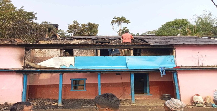बरेङ १ डढुवामा चट्याङ पर्दा घर जलेर नष्ट,नगद,सुन सहित लाखौको क्षती