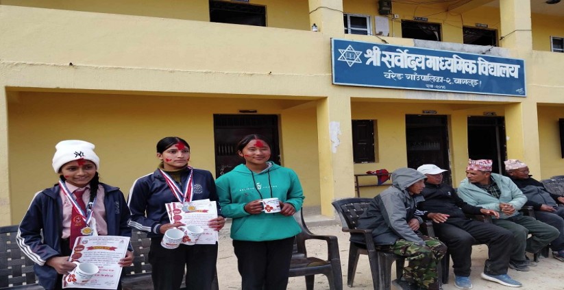 सर्वोदय मावि बरेङमा पालिकास्तरिय छैँठौँ राष्ट्रपति रनिङ शिल्ड प्रतियोगीताका विजेता विद्यार्थीहरु सम्मानित